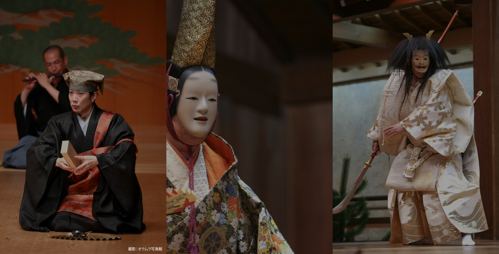 さて、船に乗り込んだ義経⼀⾏は、瀬⼾内海を⻄に進む途中、穏やかな海上は急変し、⼤荒れとなります。激しい波間には滅ぼした平家の軍勢の亡霊たちが浮かび上がり、中でも平知盛(後シテ)の霊は⻑⼑を構え、義経に襲い掛かります。打物では敵わないと、弁慶は五⼤明王を請じて知盛の亡霊を祈り退けるのでした。