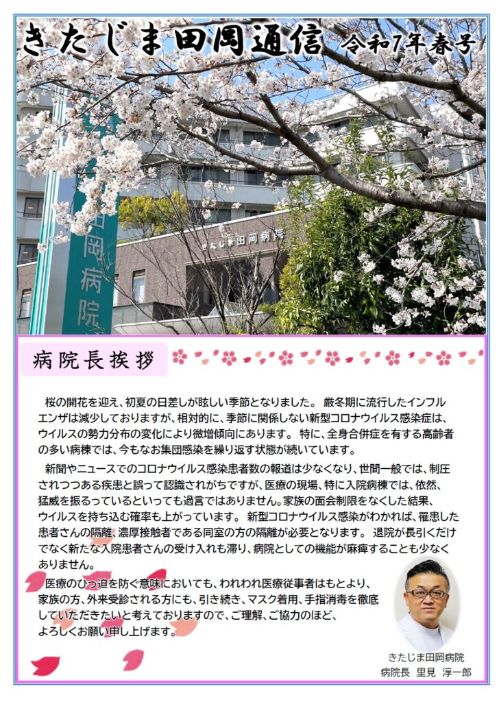 2025/04/28 最終更新日時 : 2025/12/16 kitajimaeditor きたじま田岡通信 2025 春 病院誌『きたじま田岡通信 令和7年春号』を発行しました。 過去のきたじま田岡通信はこちらへ