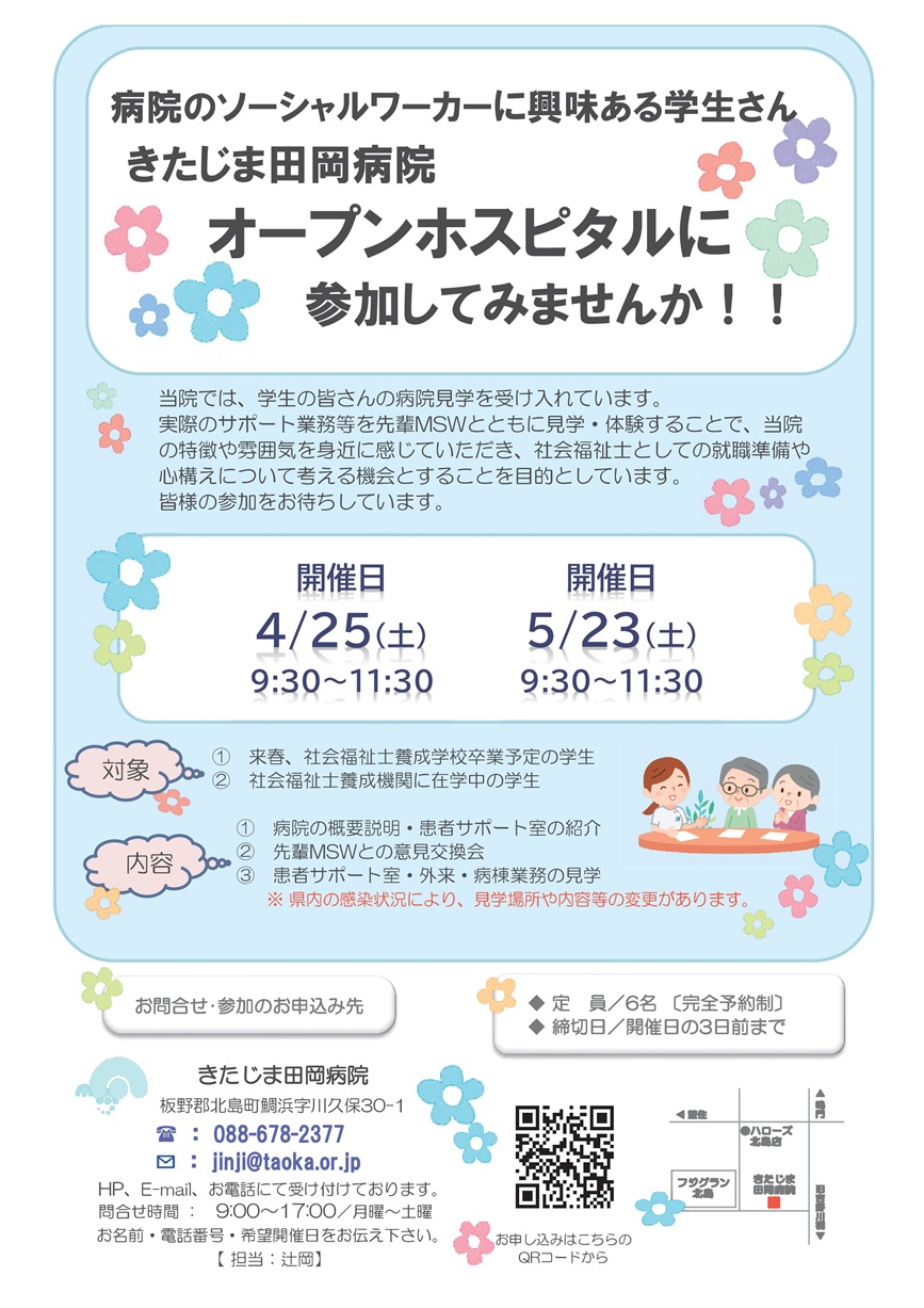 医療ソーシャルワーカー(MSW)に興味のある学生さんへオープンホスピタル開催のご案内(4、5月)