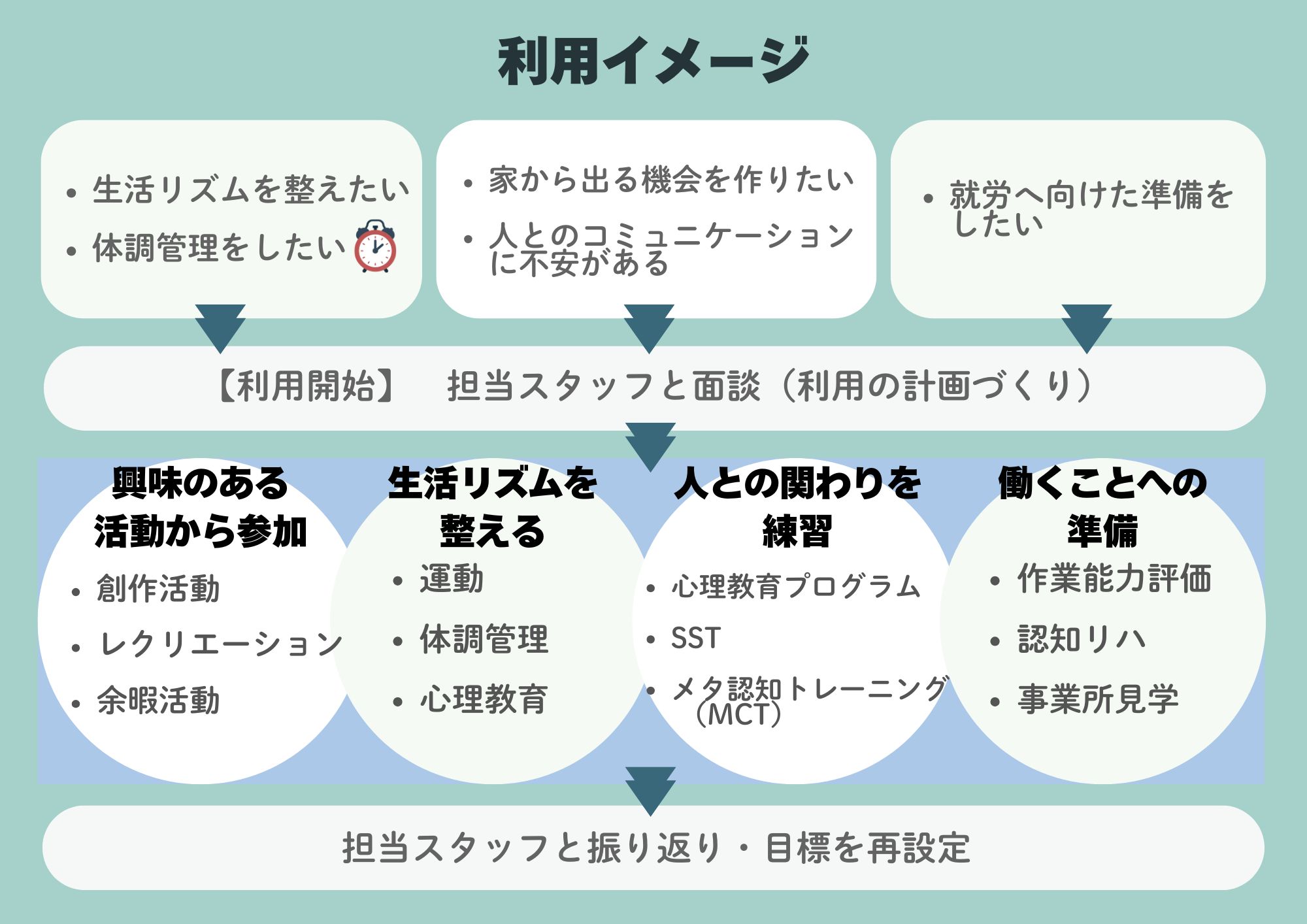 - 病状管理 健康チェック・心理教育など