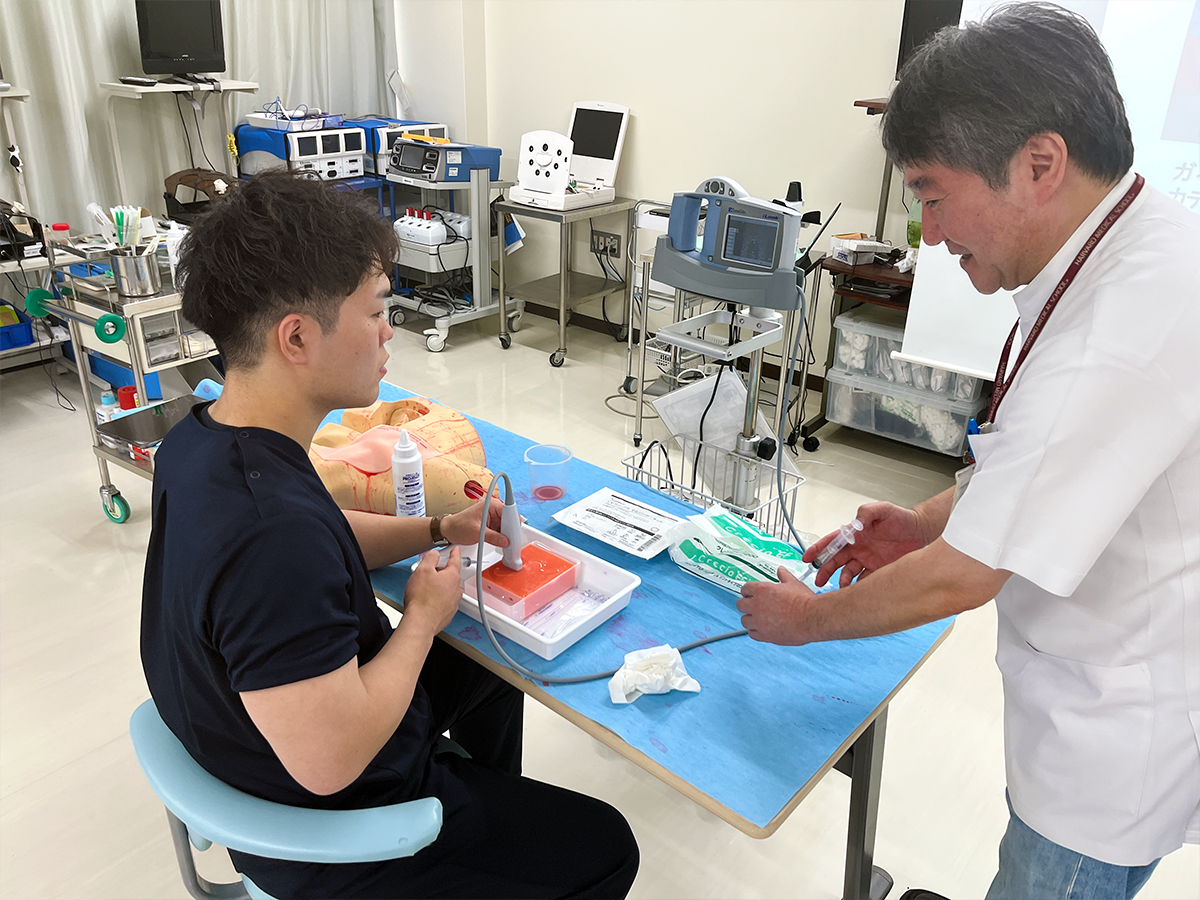 当院では、Common diseaseの体験学習や、研修医の気管挿管、中心静脈カテーテル挿入の研修病院、2004年以降は徳島大学の関連病院として、救急、総合診療、外科の研修医を受け入れました。